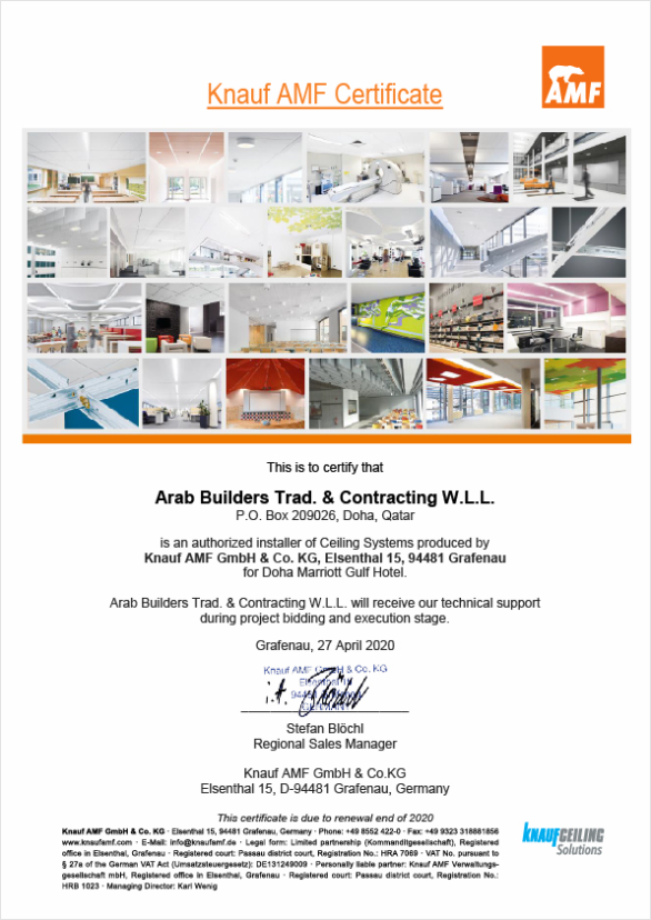 Certified Installer of Ceiling Systems Knauf AMF